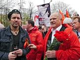 Председатель Коммунистической партии России Геннадий Зюганов (справа) на митинге КПРФ в День международной солидарности трудящихся.