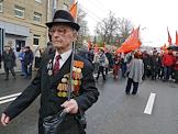 Ветераны ВОВ и участники митинга Коммунистической партии России в День международной солидарности трудящихся во время шествия.