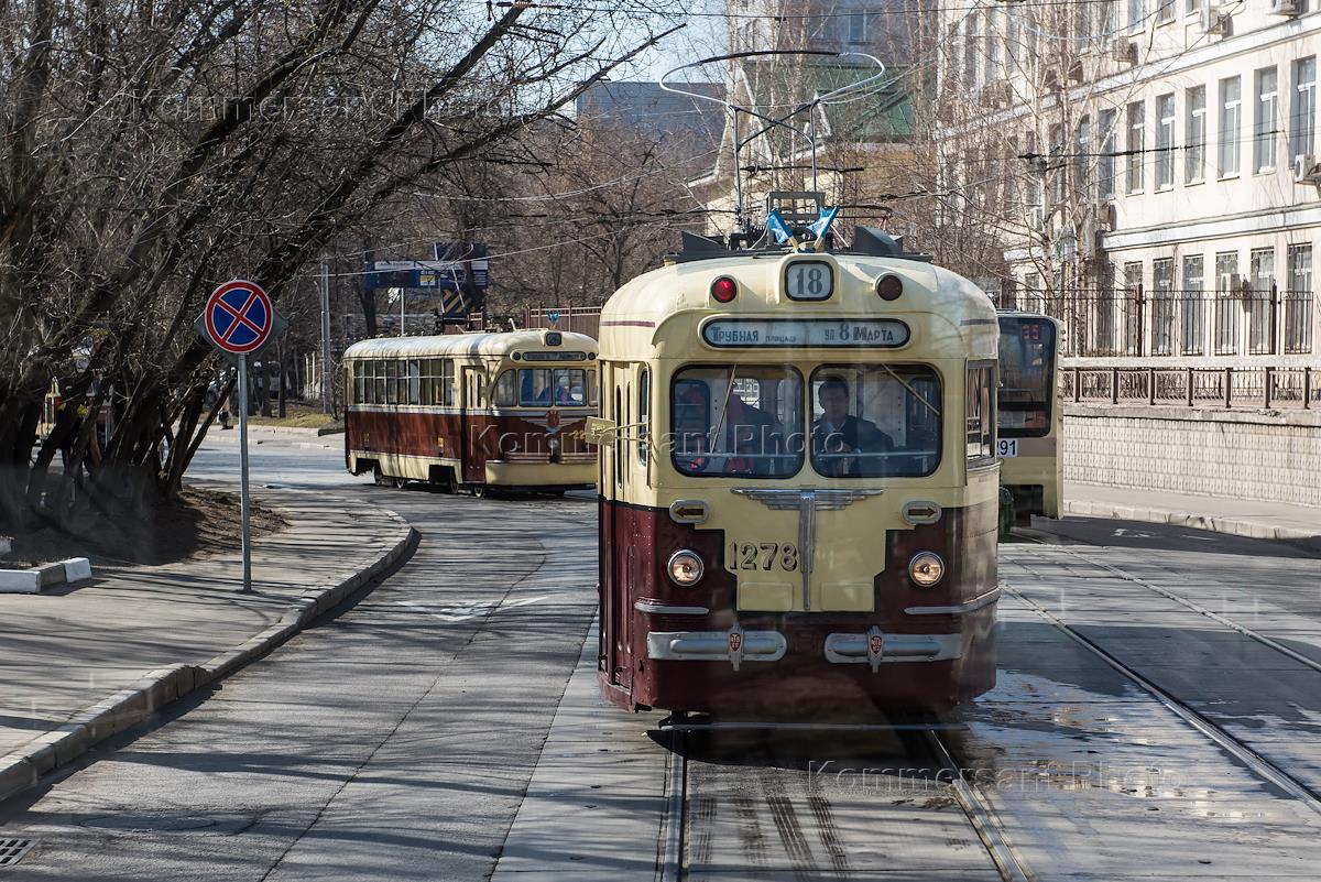 Парад трамваев, посвященный 116-летию московского трамвая. Исторические вагоны проехали от трамвайного депо имени Апакова на Шаболовке до Чистопрудного бульвара.