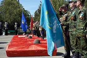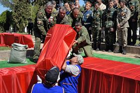 Торжественные мероприятия по захоронению 58 советских бойцов, останки которых были найдены севастопольскими поисковиками с мая 2014 по май 2015 года, прошли в Севастополе на мемориальном кладбище поселка Дергачи.
