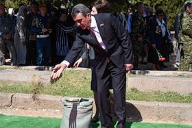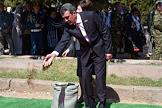 Губернатор Севастополя во время торжественных мероприятий по захоронению 58 советских бойцов, останки которых были найдены севастопольскими поисковиками с мая 2014 по май 2015 года, в Севастополе на мемориальном кладбище поселка Дергачи.