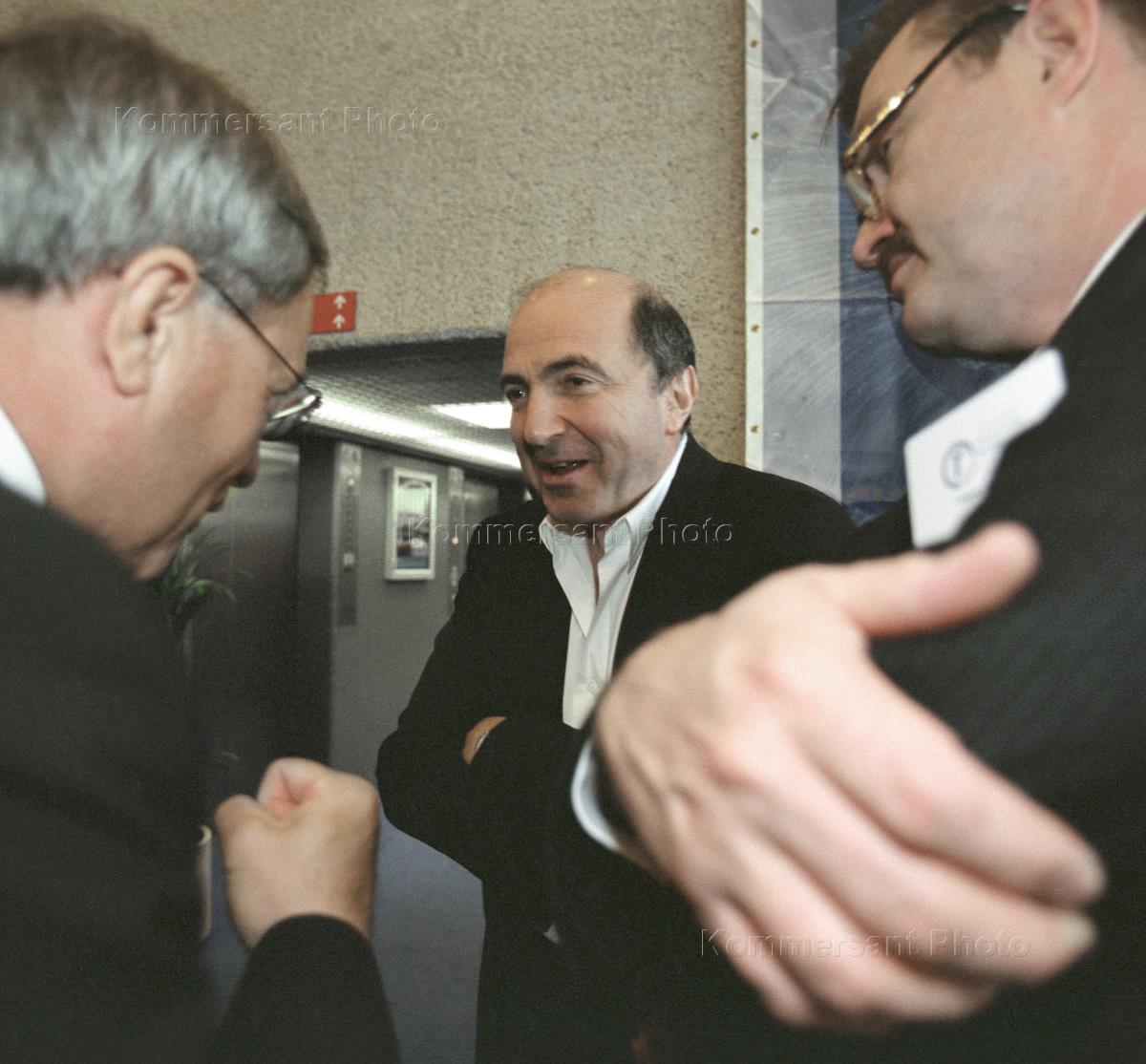 Russian 'olygarch' Boris Berezovsky (centre) attends the opening meeting of the 6th Russian Economic Forum held in the London Congress Centre.