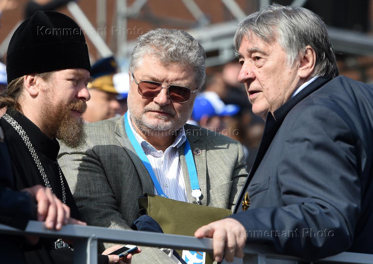 Военный Парад, посвященный 70-й годовщины Победы в Великой Отечественной войне 1941–1945 годов, прошел на Красной площади. Слева направо: архимандрит Тихон (Шевкунов), главный редактор "Литературной газеты" Юрий Поляков и писатель Александр Проханов перед началом Парада.