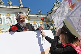 Праздничные мероприятия 70-летия Победы в Великой Отечественной войне в Санкт-Петербурге. Ветераны Великой Отечественной войне во время Парада Победы на Дворцовой площади.