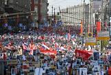 Праздничные мероприятия 70-летия Победы в Великой Отечественной войне в Москве. Участники акции "Бессмертный полк" на Тверской улице и Манежной площади.