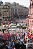 Праздничные мероприятия 70-летия Победы в Великой Отечественной войне в Москве. Участники акции "Бессмертный полк" на Манежной и Красной площадях.