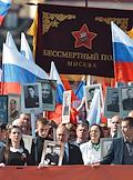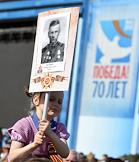 Праздничные мероприятия 70-летия Победы в Великой Отечественной войне в Москве. Учасники акции "Бессмертный полк" на Красной площади.
