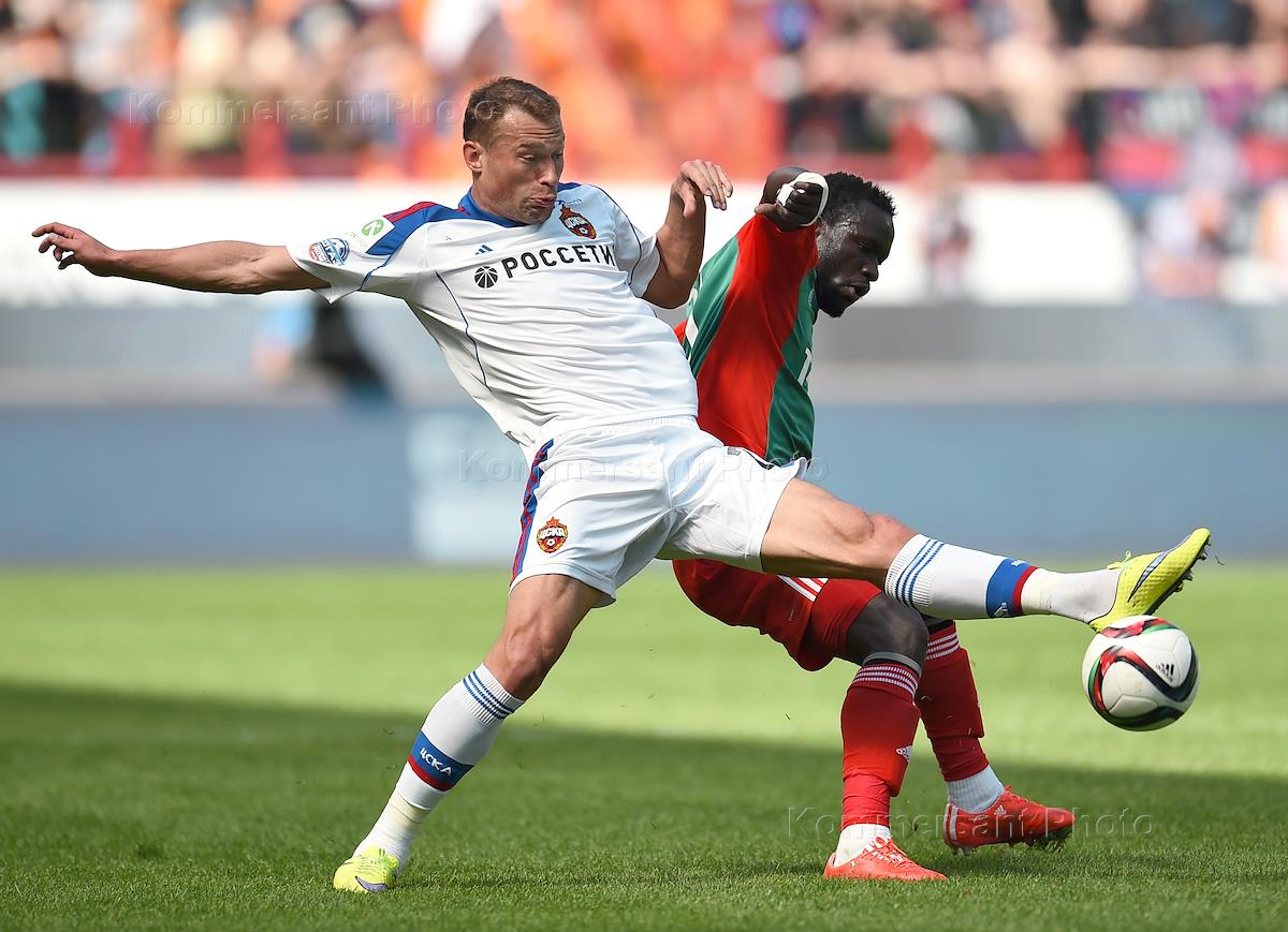 СОГАЗ-Чемпионат России по футболу 2014/2015. 27-й тур. Матч между командами "Локомотив" (Москва) и ЦСКА (Москва) прошел на стадионе "Локомотив". Футболисты Алан Дзагоев во время матча.