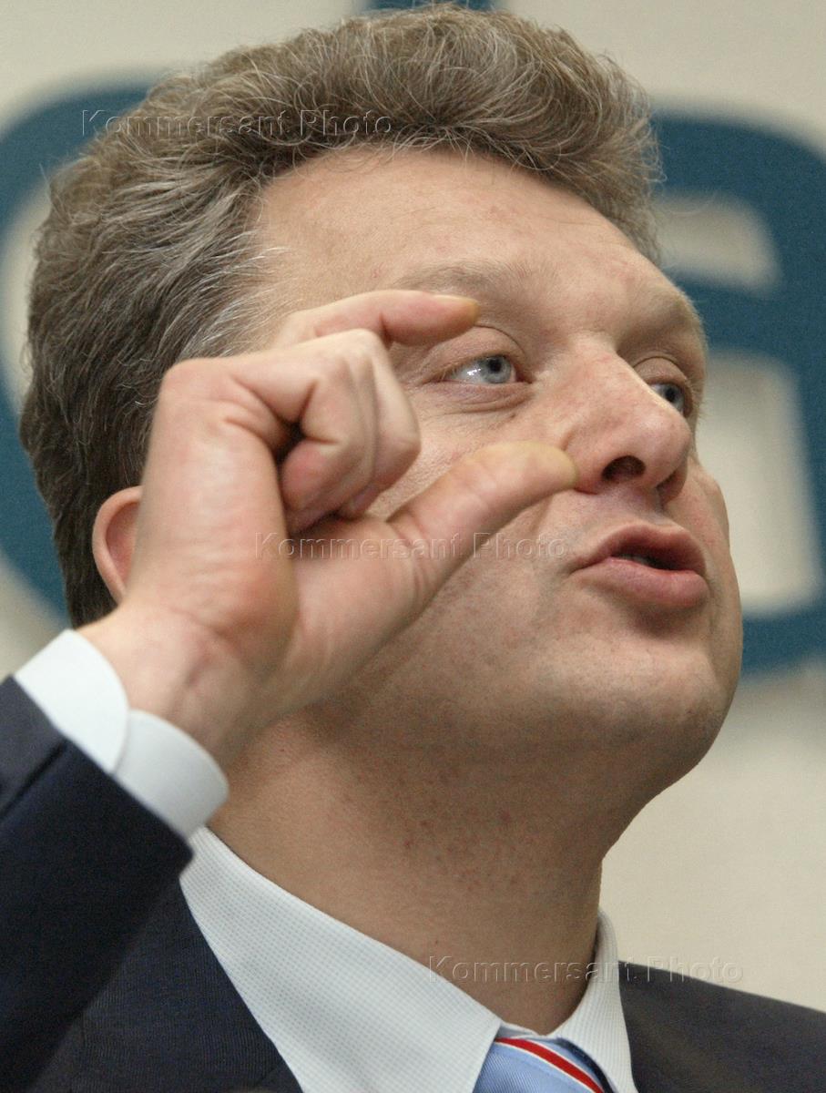 The Russian deputy prime minister Viktor Khristenko speaks at the press-conference "The prespectives of the creation of the joint economic area" that was held in the "Interfax" office.