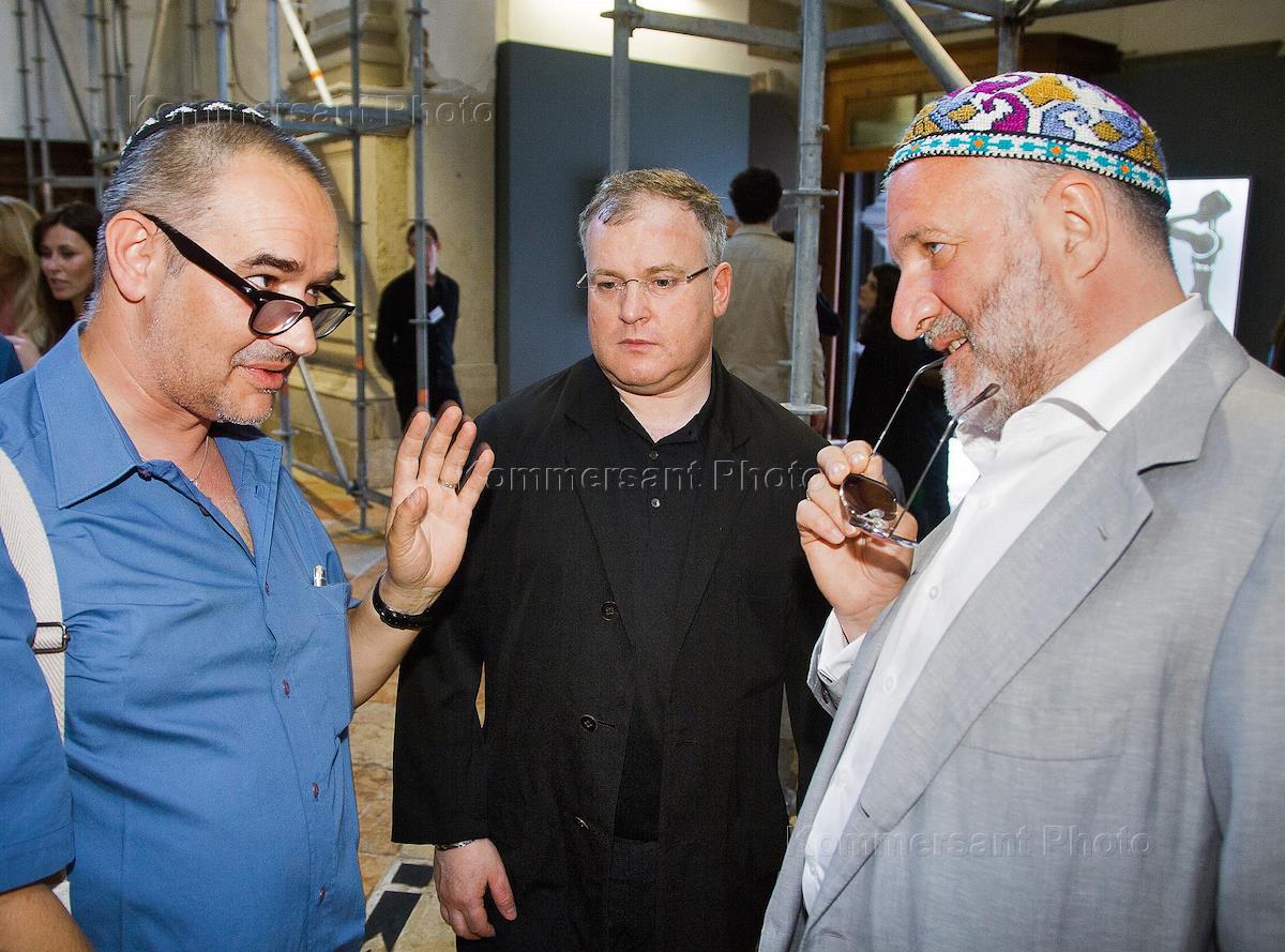 Слева направо: совладельцы галереи "Триумф" Емельян Захаров, Дмитрий Ханкин и продюсер Александр Роднянский на 56-й Венецианской биеннале.