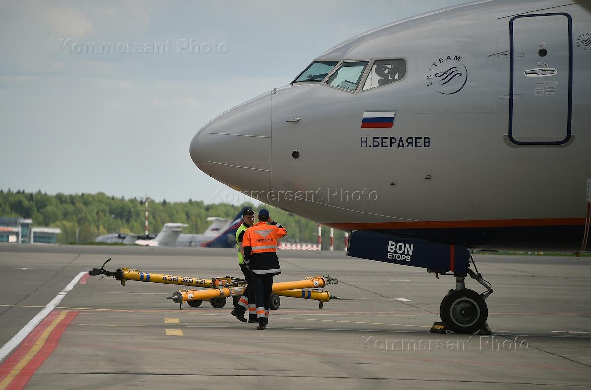 Жанровая фотография. Самолет авиакомпании "Аэрофлот" в аэропорту "Шереметьево".