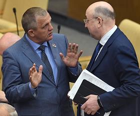 Член комитета Государственной думы России Владимир Бессонов (слева) во время заседания Госдумы.