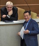 Председатель комитета Государственной думы (ГД) России по гражданскому, уголовному, арбитражному и процессуальному законодательству Павел Крашенинников (вверху) и председатель комитета ГД России по бюджету и налогам Андрей Макаров (внизу) на пленарном заседании Госдумы.