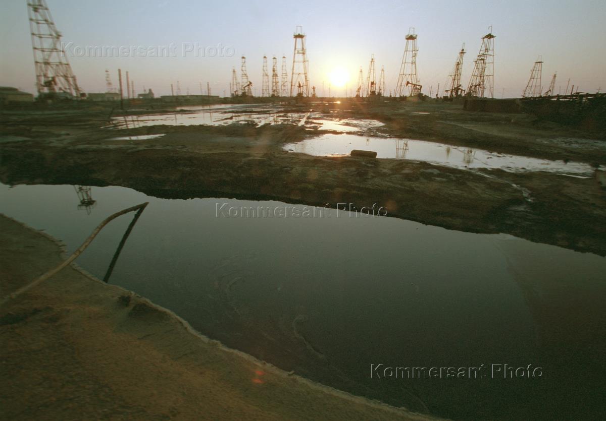 Azerbaijani workers develop an oil field.