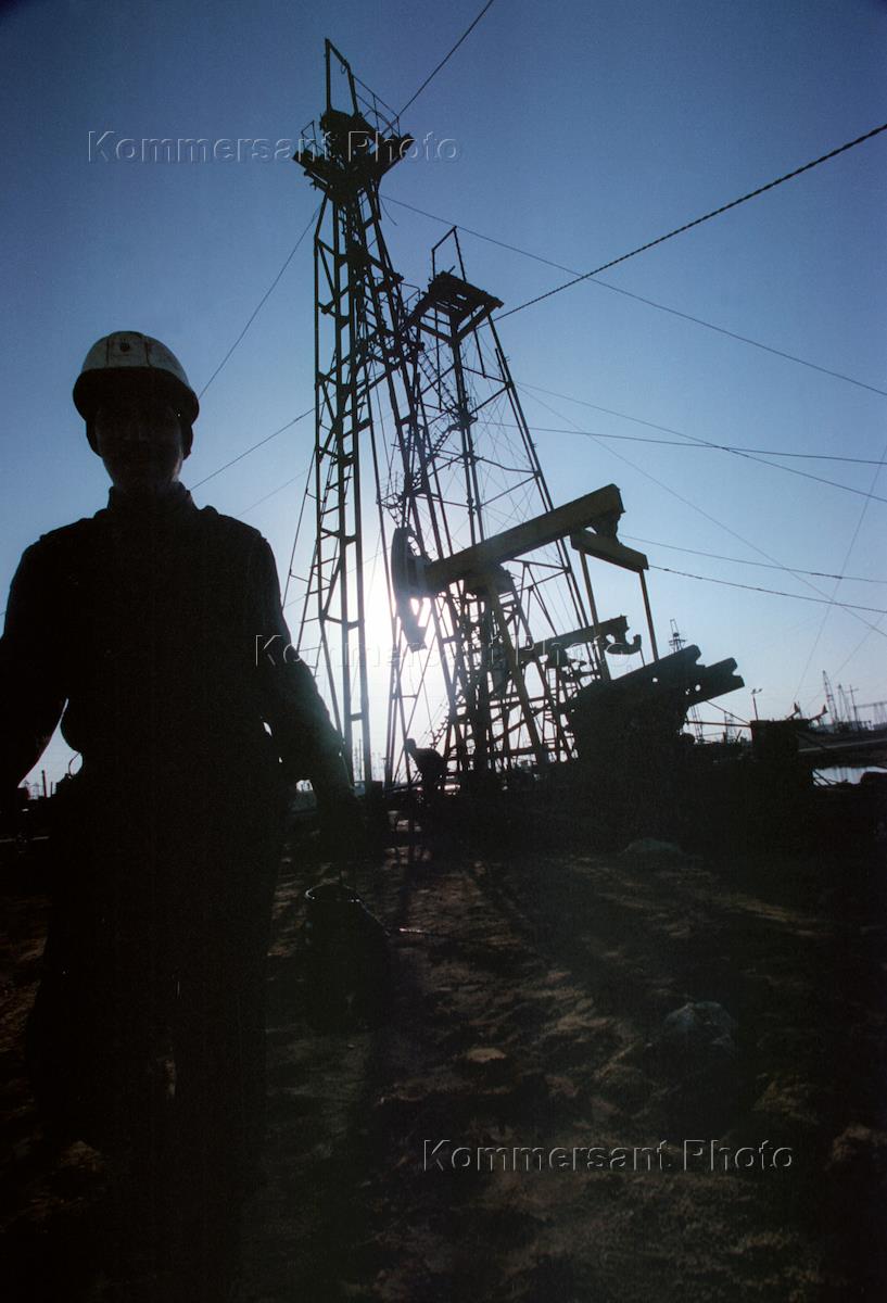 Нефтяное месторождение. Рабочие на нефтедобычи.
