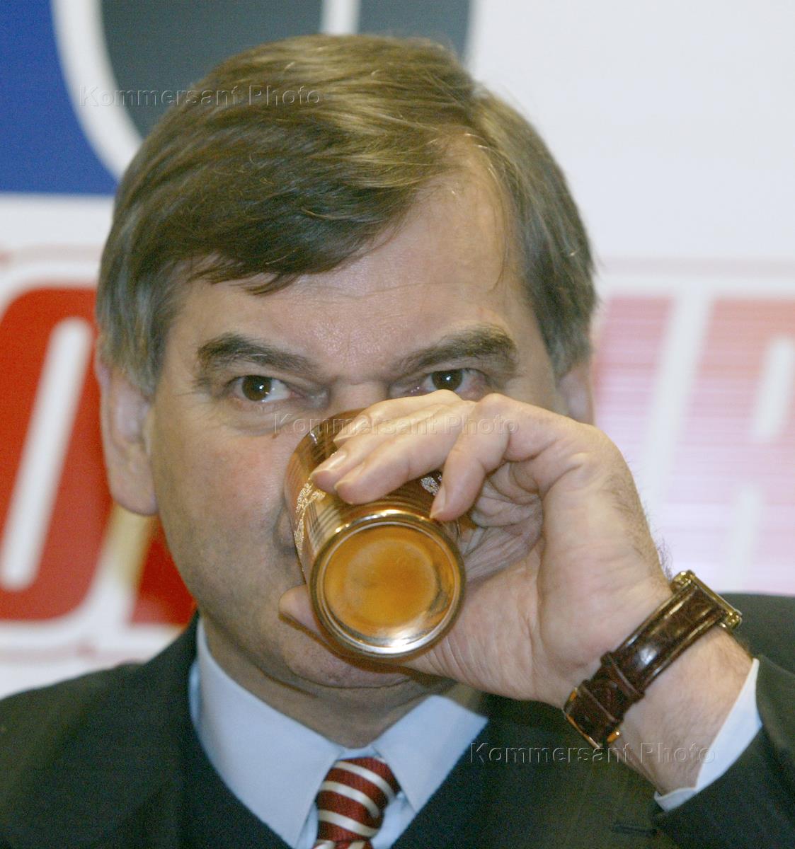 Chief coach of Lokomotiv(Yaroslavl) ice-hockey team Vladimir Vuytek is interviewed at the news conference summoned to preview the 4th match of the play-off series to be played in the Almaz ('Diamond') Ice Palace in Cherepovets.
