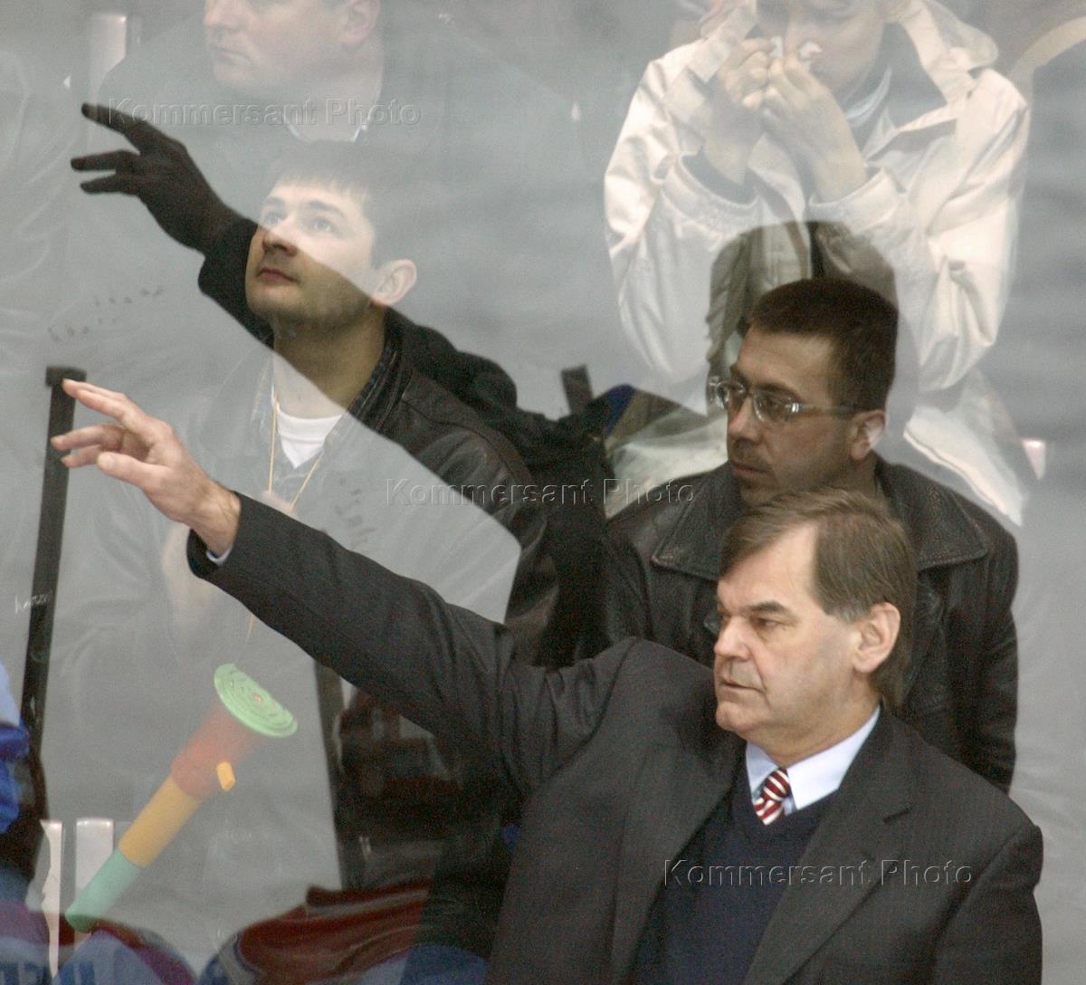 Yaroslavl Oblast Governor Anatoly Lisitsyn attends the 4th ice-hockey match, Lokomotiv(Yaroslavl)/Severstal(Cherepovets), of the play-off series in the Almaz ('Diamond') Ice Palace in Cherepovets. The match was eventually won by the Yaroslavl team by 4:0.