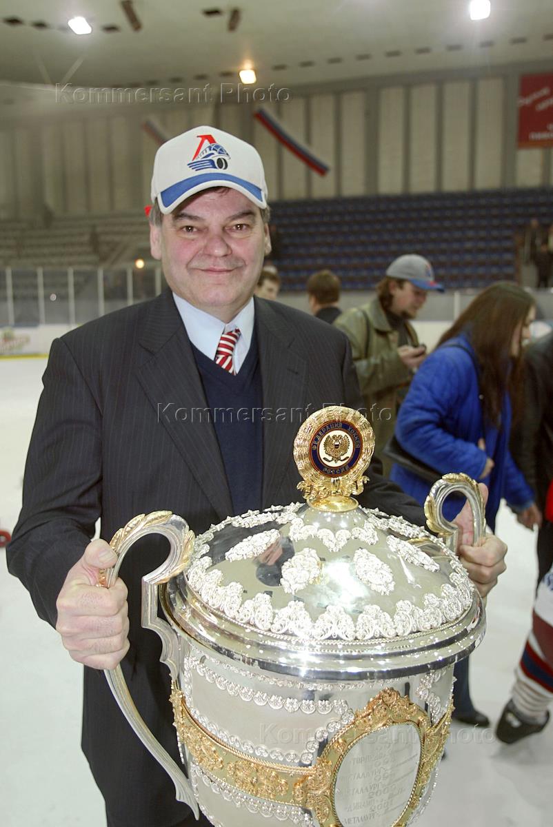 Yaroslavl Oblast Governor Anatoly Lisitsyn attends the 4th ice-hockey match, Lokomotiv(Yaroslavl)/Severstal(Cherepovets), of the play-off series in the Almaz ('Diamond') Ice Palace in Cherepovets. The match was eventually won by the Yaroslavl team by 4:0.