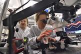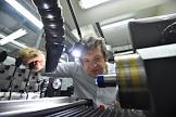 Сотрудники Квантового центра Сколково во время работы. Станок для алмазного точения оптических микрорезонаторов.
