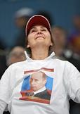 Чемпионат мира по хоккею. 1/4 финала. Матч между сборными командами России и Швеции. Российские болельщики на трибуне во время матча.