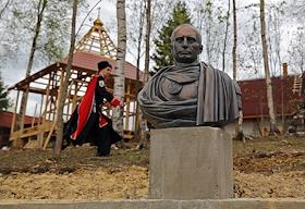 Открытие памятника Владимиру Путину в казачьем курне петербургского казачьего общества "ИРБИС", в деревне Вартемяги, в Агалатовском сельском поселении Всеволожского района Ленинградской области.