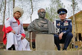 Открытие памятника Владимиру Путину в казачьем курне, в деревне Вартемяги, в Агалатовском сельском поселении Всеволожского района Ленинградской области. Шоумен Стас Барецкий.