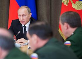 Рабочая поездка президента России Владимира Путина в Сочи. Президент России Владимир Путин во время совещания по вопросам развития Вооруженных сил РФ в резиденции "Бочаров ручей" в Сочи.