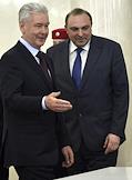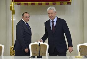 Мэр Москвы Сергей Собянин (слева) и начальник Московского метрополитена Дмитрий Пегов (справа) на церемонии подписания соглашения о сотрудничестве между метрополитенами Москвы и Пекина.