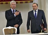 Начальник Московского метрополитена Дмитрий Пегов(слева) и мэр Москвы Сергей Собянин (справа) на церемонии подписания соглашения о сотрудничестве между метрополитенами Москвы и Пекина.