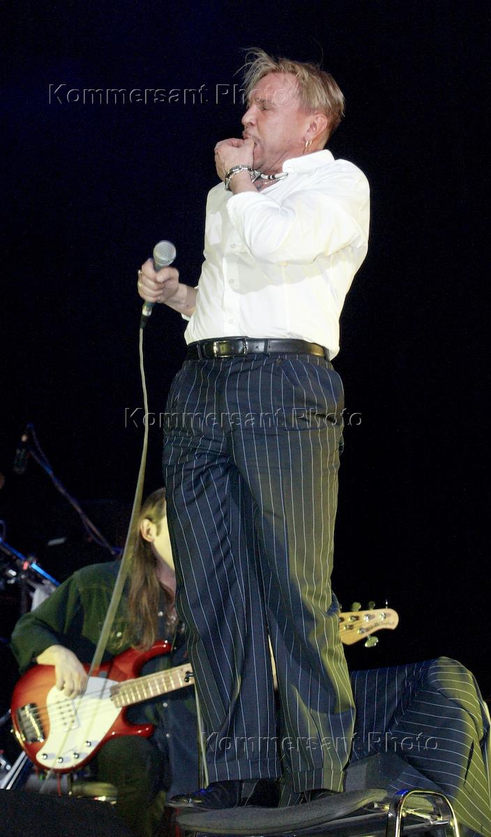 Russian rock-singer, leader of the Neprikasayemye ('Untouchables') band Garik Sukachev performs at the presentation of his new album 'Poetica' in the Rossiya concert hall.