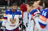 Чемпионат мира по хоккею. Финальный матч за 1-ое место. Игрок сборной команды Канады Клод Жиру (слева) и игрок сборной России Сергей Мозякин (справа) после церемонии награждения победителей матча между сборными командами России и Канады. Матч прошел на стадионе "О2 Арена".