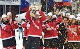 Чемпионат мира по хоккею. Финальный матч за 1-ое место. Сборная команда Канады празднует победу после окончания матча между сборными командами России и Канады. Сборная Канады выиграла со счетом 6:1. Матч прошел на стадионе "О2 Арена".