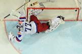 Чемпионат мира по хоккею. Финальный матч за 1-ое место. Вратарь сборной команды России Сергей Бобровский (слева) во время матча между сборными командами России и Канады. Матч прошел на стадионе "О2 Арена".