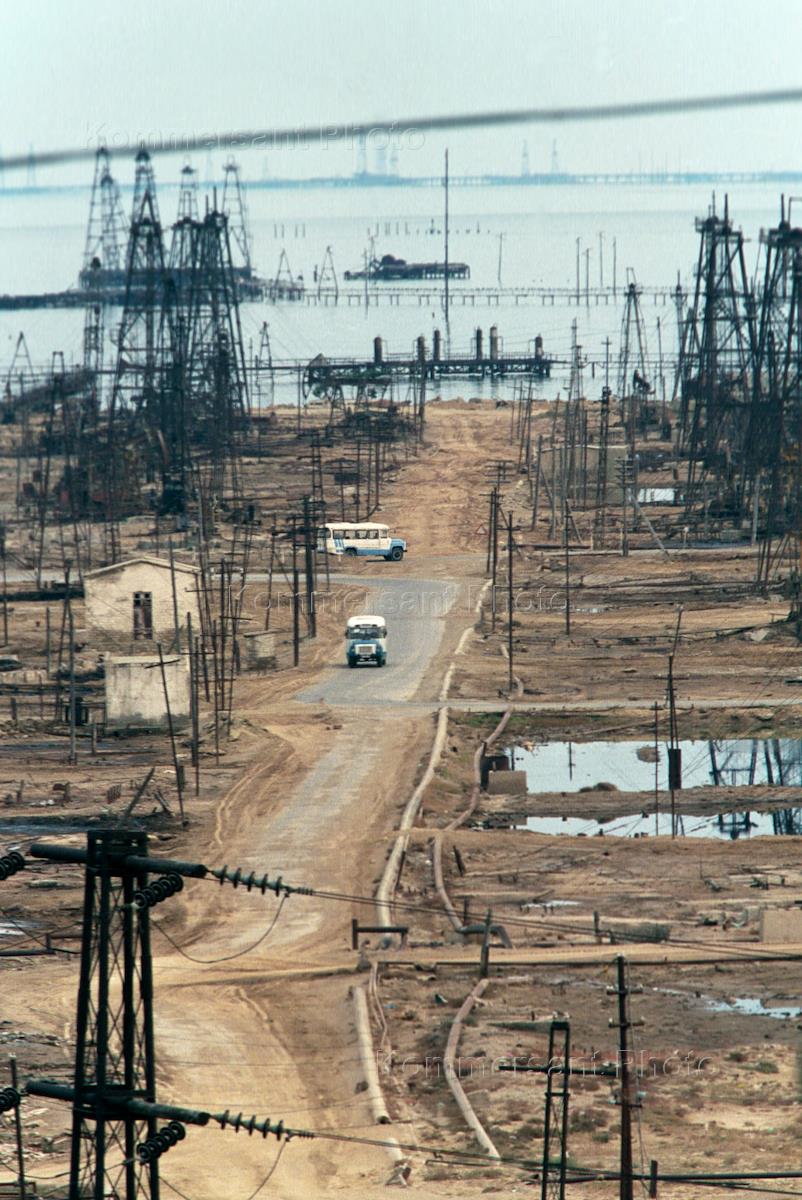 A road leading to a Caspian off-shore oil field.