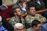 Казак из Четвертой сотни Самообороны Майдана Михаил Гаврилюк (cлева) во время заседания Верховной Рады Украины.
