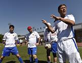 Турнир по футболу между командами фракций Госдураственной думы (ГД) России прошел в Олимпийском кмплексе "Лужники". Лидер Либерально-демократической партии России, член комитета ГД по обороне Владимир Жириновский во время футбольного матча.