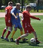 Турнир по футболу между командами фракций Госдураственной думы (ГД) России прошел в Олимпийском кмплексе "Лужники". Заместитель председателя комитета ГД по науке и наукоемким технологиям Михаил Дегтярев (слева) и член комитета ГД по безопасности и противодействию коррупции Дмитрий Носов (справа) во время матча между командами фракций Либерально-демократической партии России (ЛДПР) и партии "Единая Россия".