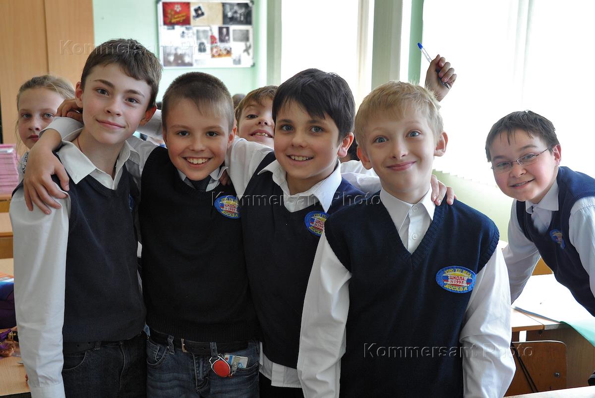 Жанровая фотография. Ученики средней школе № 1995 после первого открытого урока с электронными учебниками.