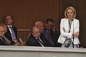 Председатель Счетной палаты России Татьяна Голикова (в центре) во время пленарного заседания Государственной думы России.