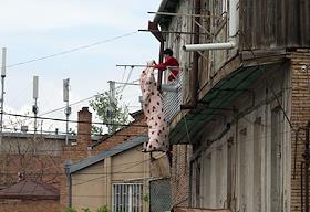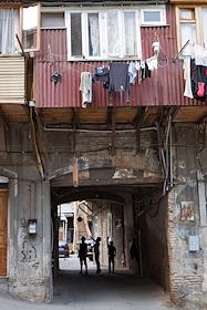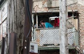 Виды Тбилиси. Мужчина бреется на балконе.
