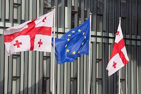 Жанровая фотография. Виды Тбилиси. Государственные флаги Грузии и флаг Евросоюза.
