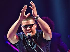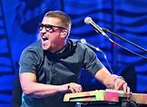 Независимый музыкальный фестиваль Bosco Fresh Fest - 2015 прошел в Саду "Эрмитаж". Основатель группы Therr Maitz Антон Беляев во время концерта группы с симфоническим оркестром.