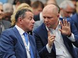 Всероссийская конференция "Малый и средний бизнес: стратегия прорыва". Генеральный директор Федерального фонда содействия развитию жилищного строительства Александр Браверман (слева) и вице-президент Сбербанка Андрей Шаров (справа) на конференции в ЦВК "Экспоцентр".