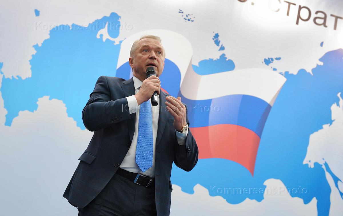 Всероссийская конференция "Малый и средний бизнес: стратегия прорыва". Президент торгово-промышленной палаты (ТПП) России Сергей Катырин на конференции в ЦВК "Экспоцентр".