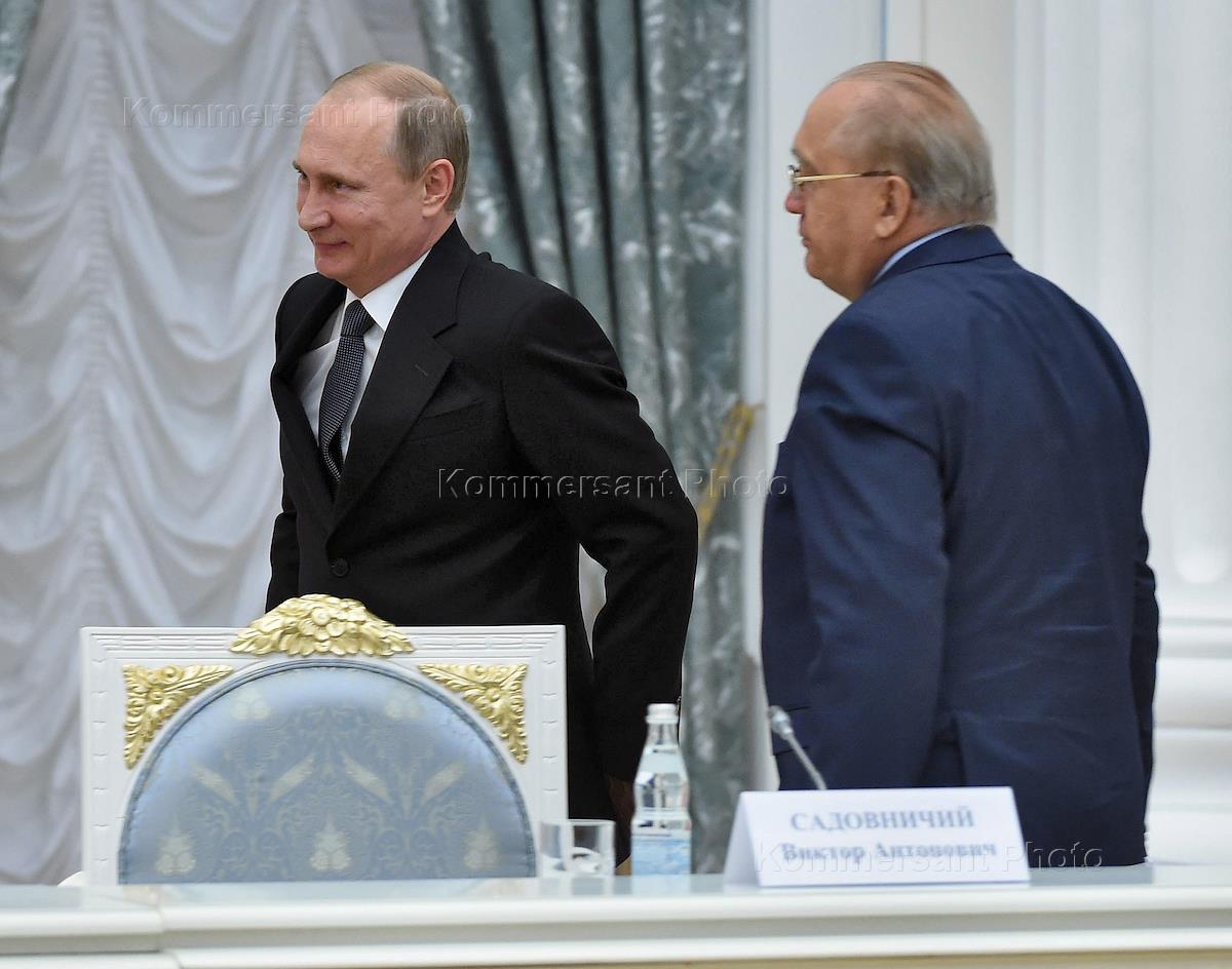 Президент России Владимир Путин (слева) и вице-президент РАН. ректор МГУ имени М.В.Ломоносова Виктор Садовничий (cправа) перед началом заседания попечительского совета Московского государственного университета имени М.В.Ломоносова.