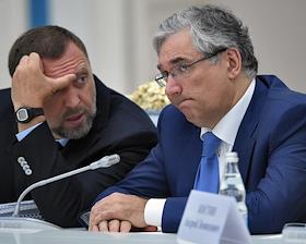 Президент, генеральный директор компании En + Group Олег Дерипаска (слева) и председатель ВГТРК Олег Добродеев (справа) во время заседания попечительского совета Московского государственного университета имени М.В.Ломоносова под председательством президента России Владимира Путина.