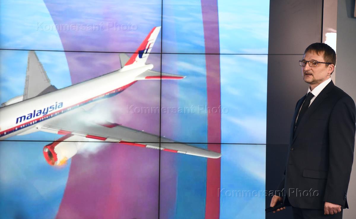Советник генерального конструктора концерна "Алмаз-Антей" Михаил Малышевский во время презентации концерна "Алмаз-Антей", посвященной результатам собственного расследования катастрофы малайзийского самолета Boeing 777, сбитого 17 июля 2014 года над Украиной.