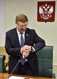 Заседание "Круглого стола" на тему "Об итогах обзорной конференции по Договору о нераспространении ядерного оружия в контексте национальных интересов Российской Федерации". Председатель комитета Совета федерации по международным делам Константин Косачев во время заседания в Совете Федерации России.