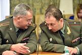 Заседание "Круглого стола" на тему "Об итогах обзорной конференции по Договору о нераспространении ядерного оружия в контексте национальных интересов Российской Федерации". Заместитель начальника Третьего управления Главного оперативного управления Генерального штаба Вооруженных Сил России Сергей Смирнов (слева) и начальник Третьего управления Главного оперативного управления Генерального штаба Вооруженных Сил России Андрей Стерлин (справа) во время заседания в Совете Федерации России.