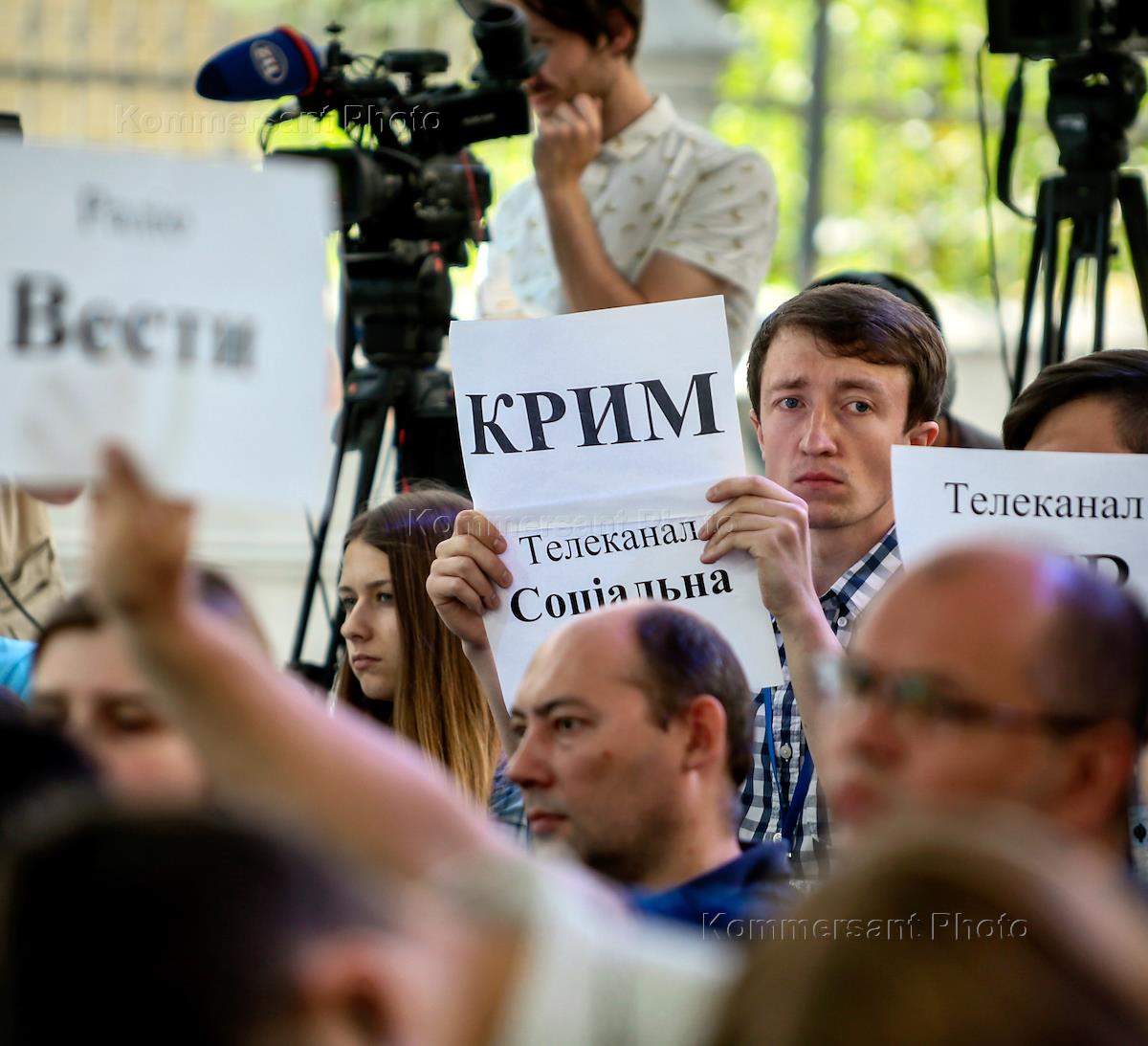 Журналист телеканала "Крым" во время пресс-конференции президента Украины Петра Порошенко.